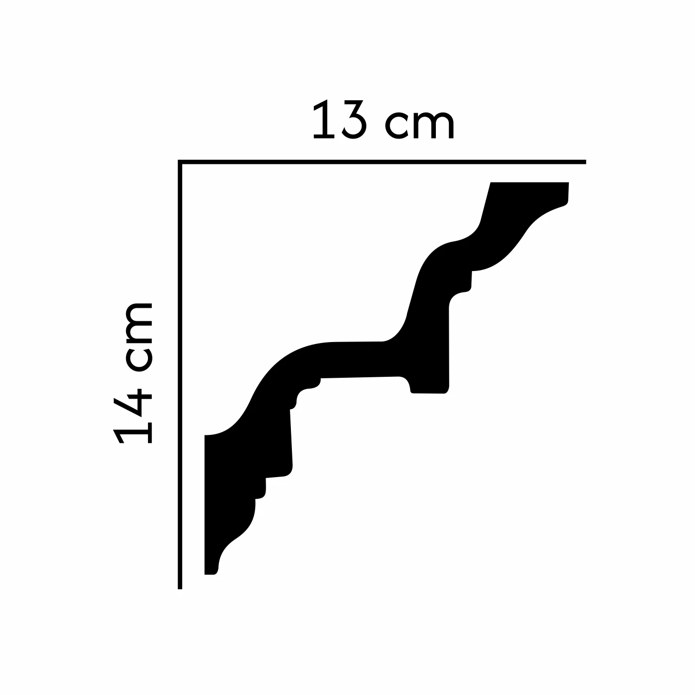 Faseta F-311 to elegancka listwa sufitowa inspirowana klasyczną architekturą wnętrz, w której kluczową rolę odgrywa regularność i rytm detalu. Charakterystyczny, powtarzalny motyw drobnych kasetonów w dolnej partii fasety nadaje jej uporządkowany, architektoniczny charakter, kojarzący się z klasycznymi gzymsami pałacowymi i kamienicznymi.