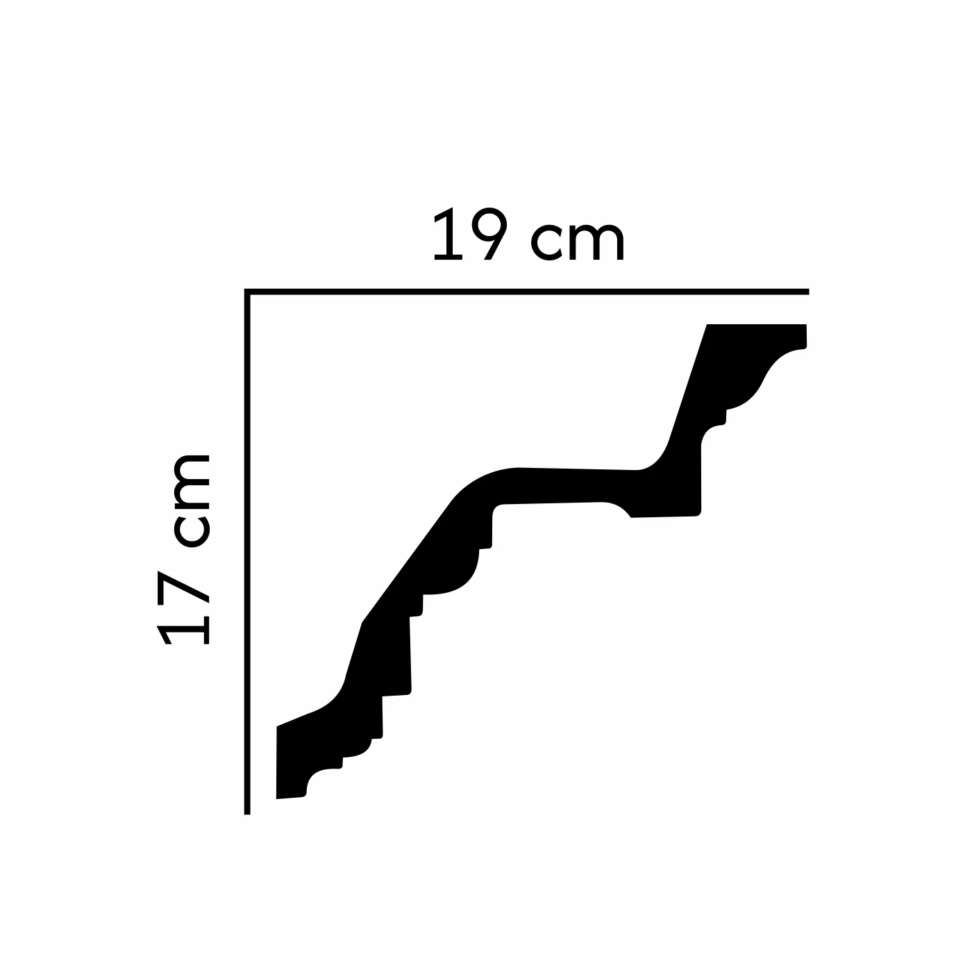 Faseta F-312 to klasyczna listwa sufitowa o spokojnej, eleganckiej formie, której charakter podkreśla regularny, rytmiczny detal w dolnej części profilu. Subtelne, powtarzalne podziały nawiązują do tradycyjnych gzymsów architektonicznych, stosowanych w reprezentacyjnych wnętrzach pałacowych i kamienicznych.