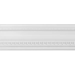 Listwa podsufitowa ozdobna wykonana z gipsu ceramicznego. Przeznaczona do łagodzenia połączenia miedzy sufitem a ścianą. Wzór do wyższych pomieszczeń, nadający klasycznego charakteru. Może zostać wykorzystany do wykonania kasetonów sufitowych.