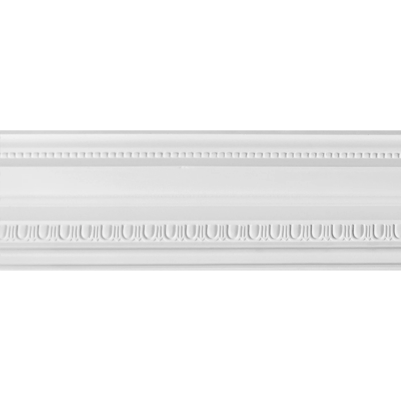 Faseta F-313 to elegancka listwa sufitowa o wyważonym, klasycznym charakterze, łącząca gładkie płaszczyzny z subtelnym, rytmicznym ornamentem w dolnej strefie profilu. Regularnie powtarzający się motyw półkolisty nadaje całości dekoracyjności, jednocześnie zachowując spokojną i ponadczasową formę.