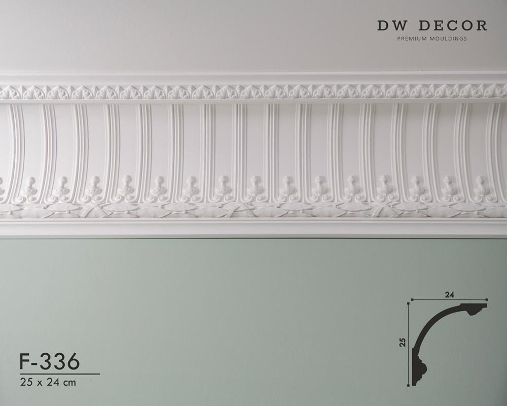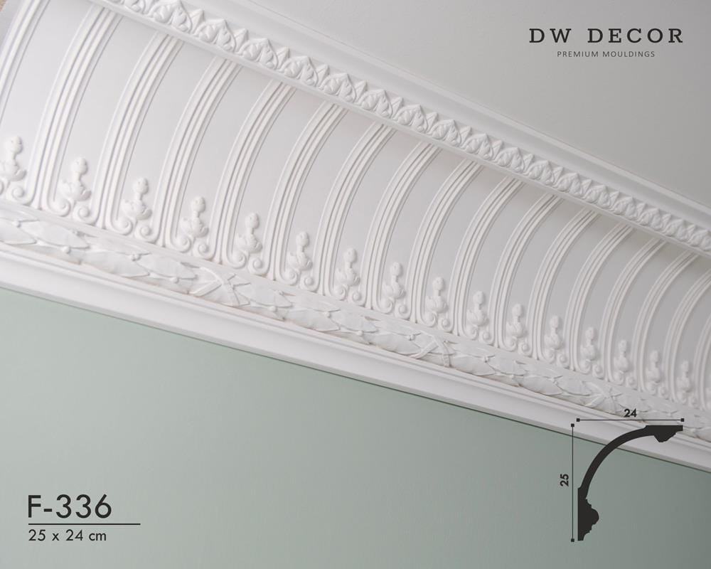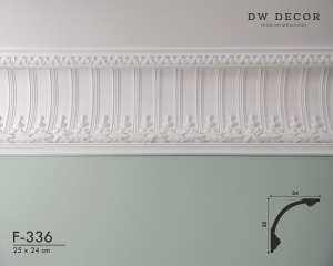 Faseta gipsowa F-336 - Klasyczna faseta podsufitowa wykonana z gipsu sztukatorskiego w kolorze białym. Dostojny wzór fasety pozwala na uzyskanie stylizowanych pomieszczeń o wysokim poziomie wykończenia i gustownym charakterze.