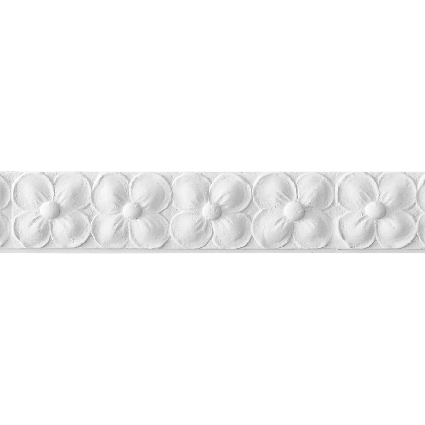Listwa L-311 to subtelny, a zarazem wyrazisty element dekoracyjny o rytmicznym motywie kwiatowym, inspirowanym klasycznym ornamentem rozetowym. Każdy kwiat jest precyzyjnie modelowany, tworząc harmonijny układ o delikatnej głębi i miękkiej grze światła i cienia.