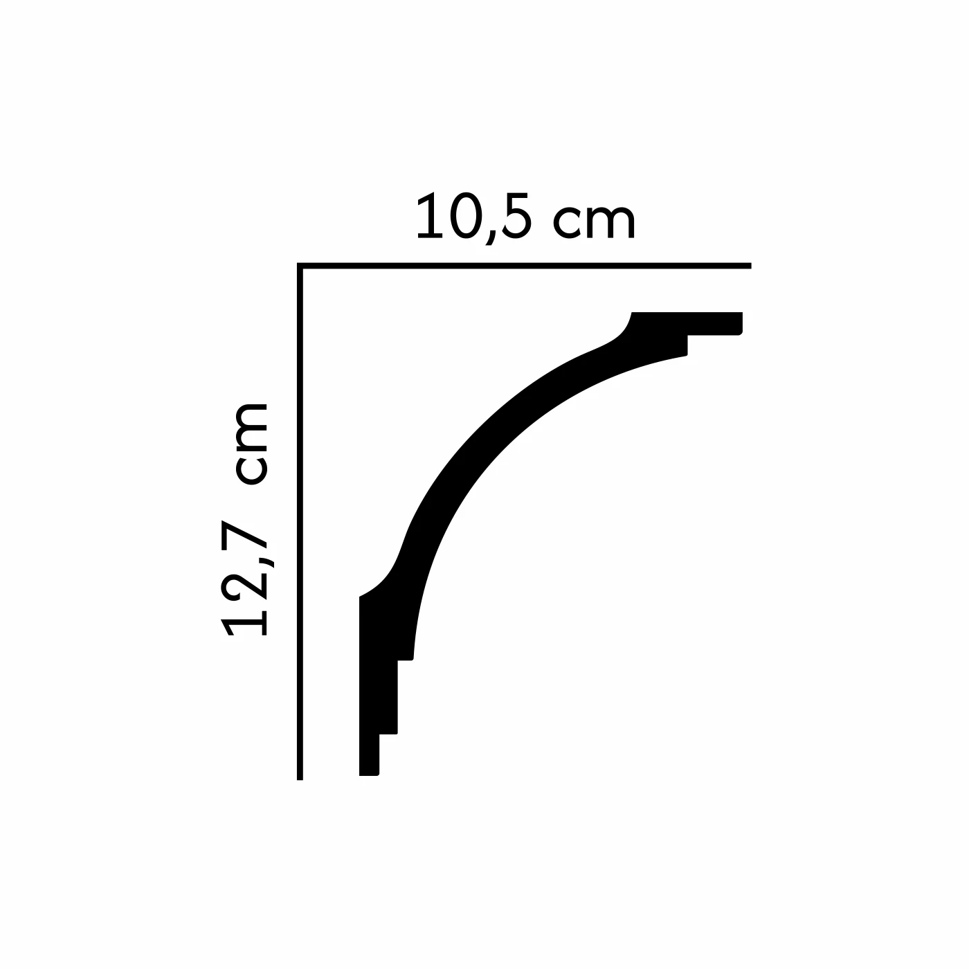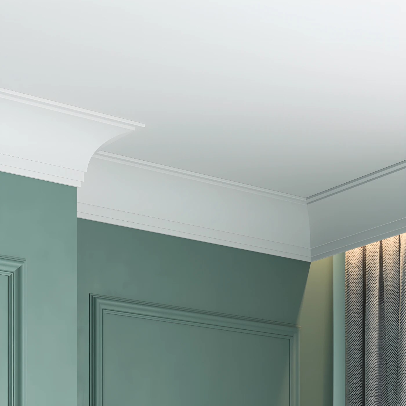 Jej półokrągły profil uzupełniony prostymi liniami i delikatnymi stopniami tworzy formę pełną harmonii i równowagi. Dzięki temu listwa doskonale porządkuje przestrzeń i nadaje jej spokojnego, wyrafinowanego charakteru.