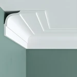 Trzy wyraźne krawędzie biegnące wzdłuż profilu tworzą efekt architektonicznej ramy, która dodaje wnętrzu głębi i rytmu. Dzięki temu listwa staje się nie tylko praktycznym elementem wykończenia, ale również mocnym akcentem dekoracyjnym.