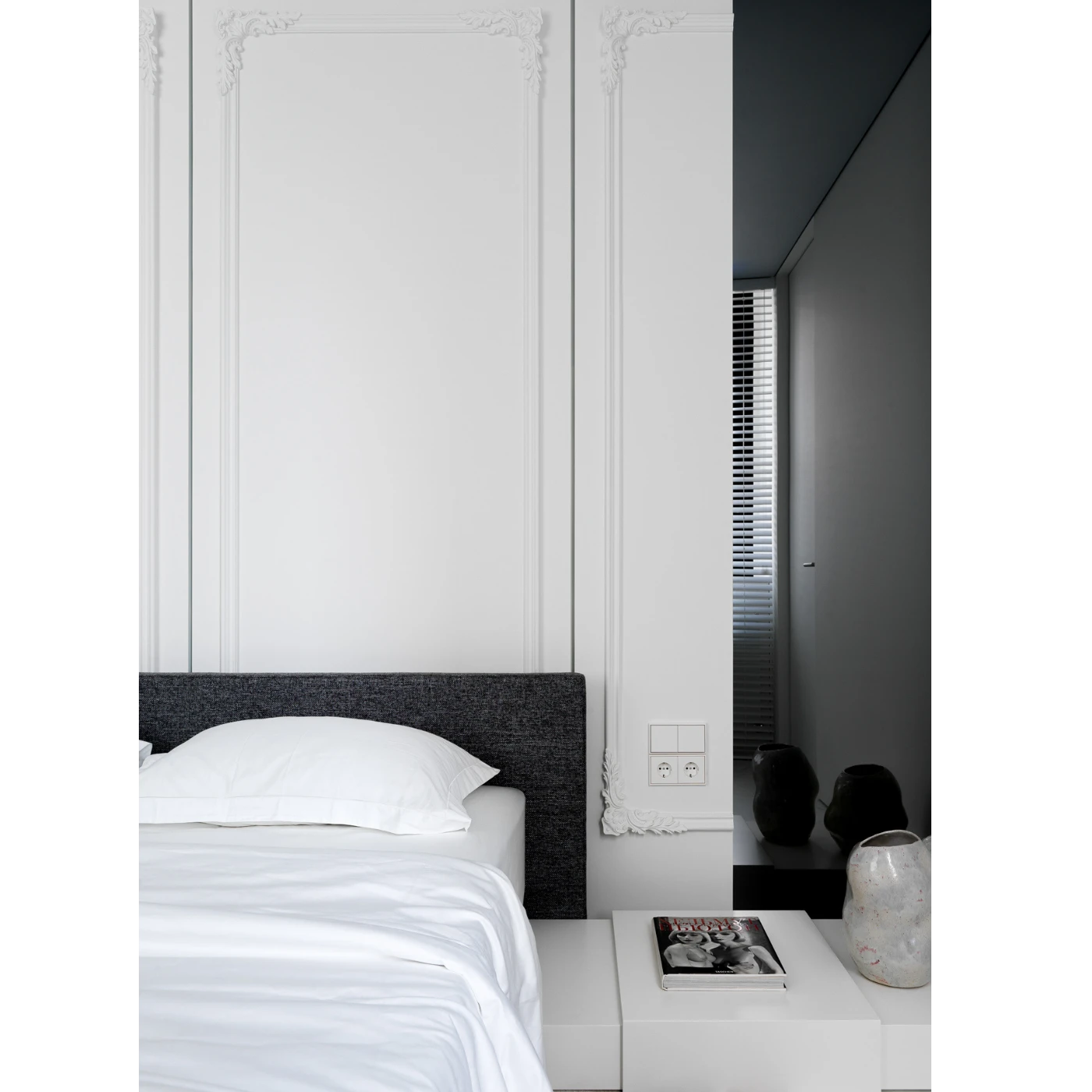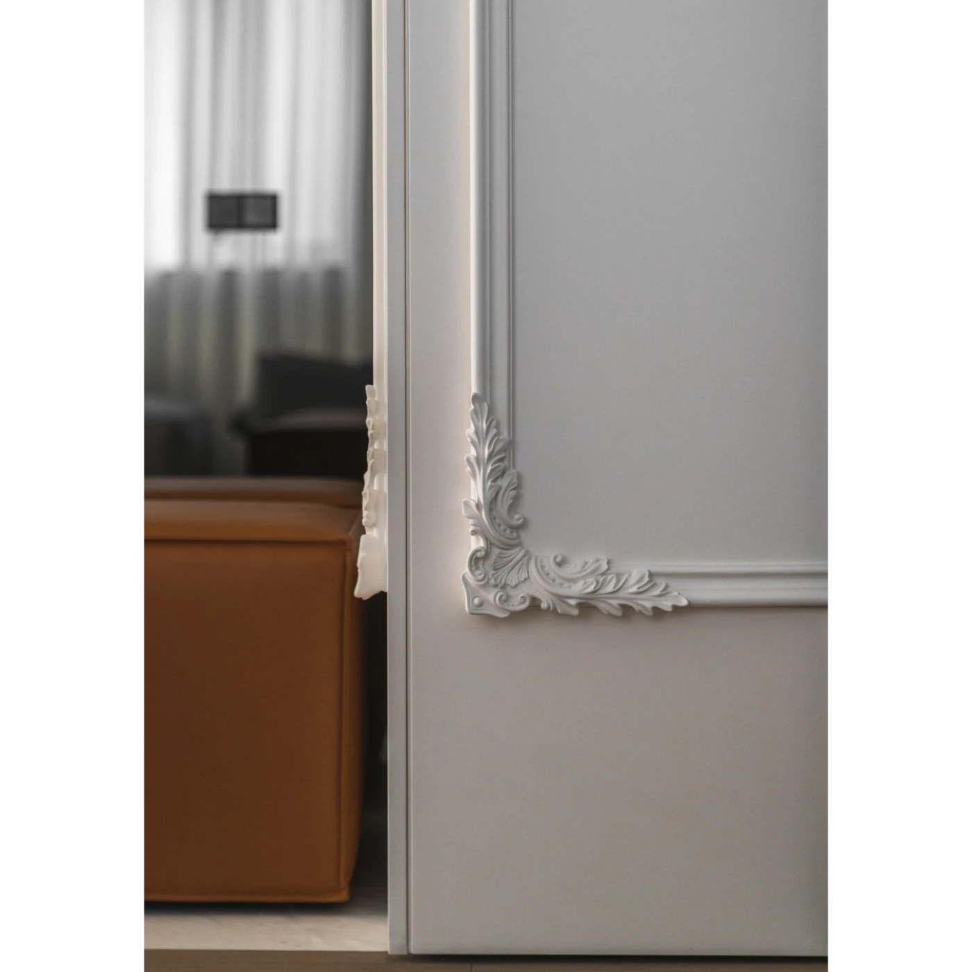 Każdy detal narożnika został opracowany z niezwykłą dbałością o proporcje i płynność przejść, dzięki czemu element doskonale łączy się z listwą, tworząc spójną i elegancką ramę bez konieczności cięcia pod kątem.